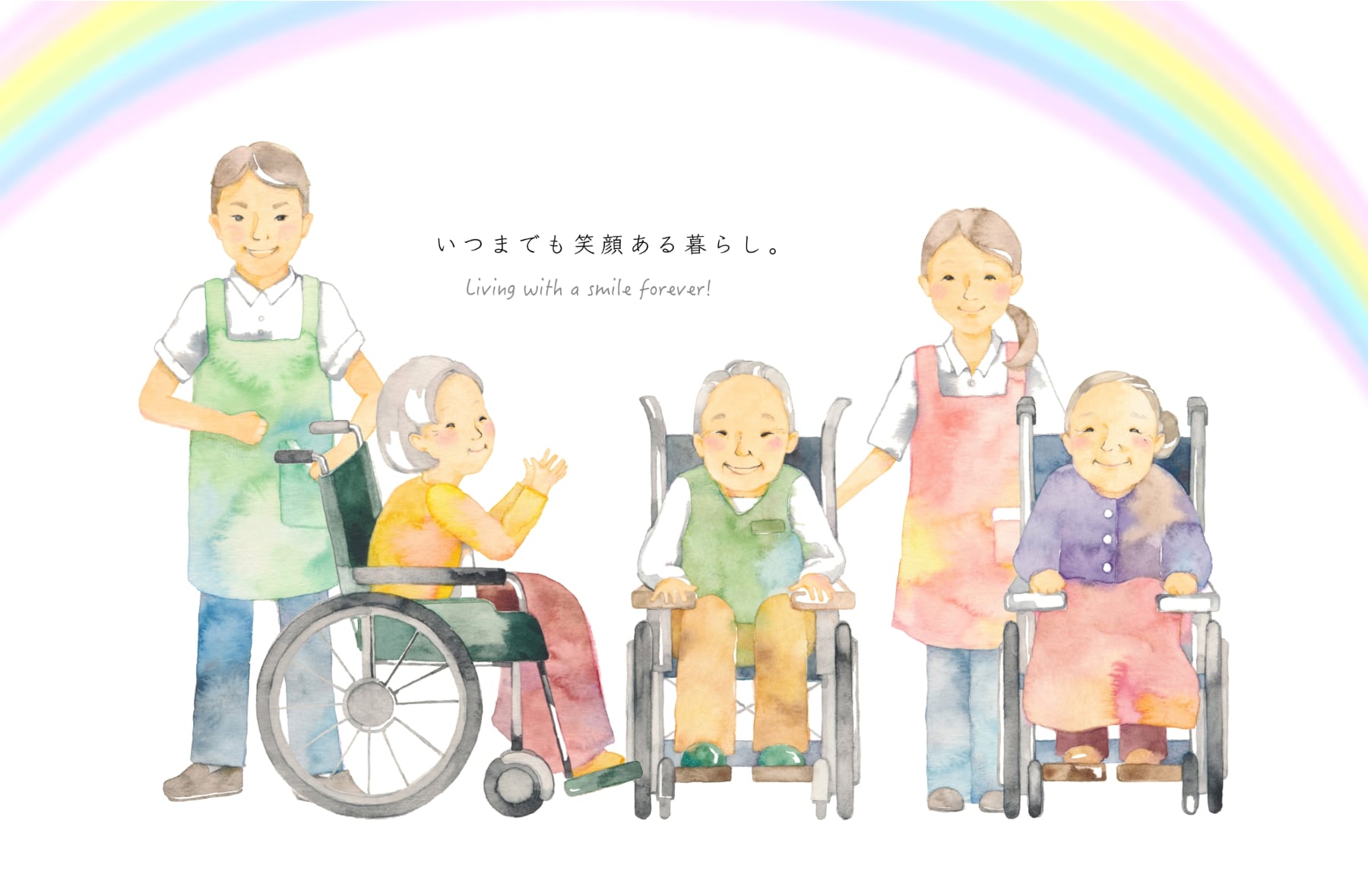 私たちは、笑顔あふれる介護サービスを通して老いることに希望の持てる生活を創造し社会に貢献します。